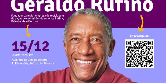 O empresário é autor do livro “O catador de sonhos” e palestrante. Em Cotia, ele compartilhará a sua trajetória de dedicação, persistência e coragem para mudar a própria realidade e a vida das pessoas à sua volta. Em seu conteúdo, Rufino trará orientações para superar crises e sair da zona de conforto.