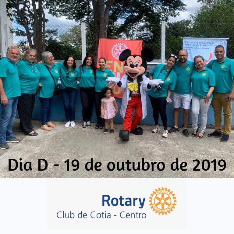 No sábado, 19 de outubro de 2019, o Rotary Club Cotia Centro realizou com o apoio da Secretaria da Saúde de Cotia, o Dia D na Escola Municipal Jardim Panorama, no Jd. Arco-íris, em Cotia. O bairro que fica um pouco afastado do centro da cidade, teve um dia diferenciado para toda a família.