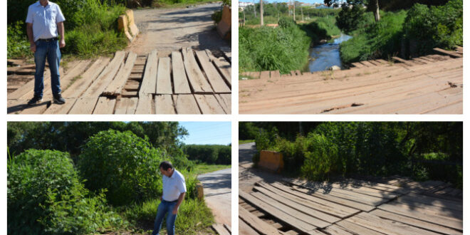 Alexandre Pierroni comenta que foi procurado por motoristas e pedestres que utilizam a ponte, visando assim que o Parlamentar solicite providências junto a Administração Municipal. “Quem utiliza a via para cruzar de um lado a outro deve tomar muito cuidado, pois a ponte é antiga e de madeira, várias tábuas estão podres e pode ser até que aconteça algum acidente grave”, fala o Vereador.