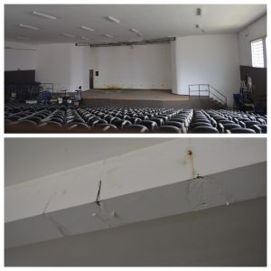 Alexandre Pierroni, que está constantemente lutando pela comunidade, explica que o local já serviu de palco para diversas apresentações culturais. “O anfiteatro atendia toda nossa sociedade e infelizmente está inutilizado por causa de vários problemas em decorrência de infiltrações de água de chuva pelas calhas, condutores e rufos que causaram danos no forro de gesso, no piso do palco de taco, afetando também a pintura das paredes”, explica.