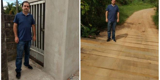 O vereador Alexandre Pierroni acompanhou nesta semana os serviços de recuperação da ponte de madeira localizada na Estrada dos Barros, próximo a divisa com a Fazenda Butantã, onde foram instaladas oito pranchas de madeira em substituição as que haviam desaparecido.