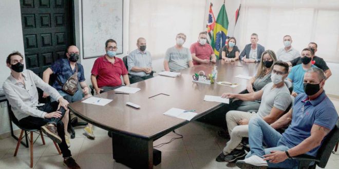 Ao lado do Prefeito Guto Issa, o Vereador Guilherme Nunes participou de uma reunião na Prefeitura durante a tarde da última quarta-feira, 16. A pauta foi para discutir com empresários e músicos a necessidade de alteração na Lei do Plano Diretor, instituída em 2006, que proíbe a realização de shows com música ao vivo em praticamente todo o município de São Roque.