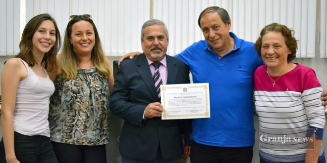 No último dia 26, na Câmara Municipal, o vereador Julio Mariano concedeu homenagem ao ex-Diretor da Escola Municipal Maria Aparecida de Oliveira Ribeiro, Laudemir Nunes, através de Moção de Congratulação.